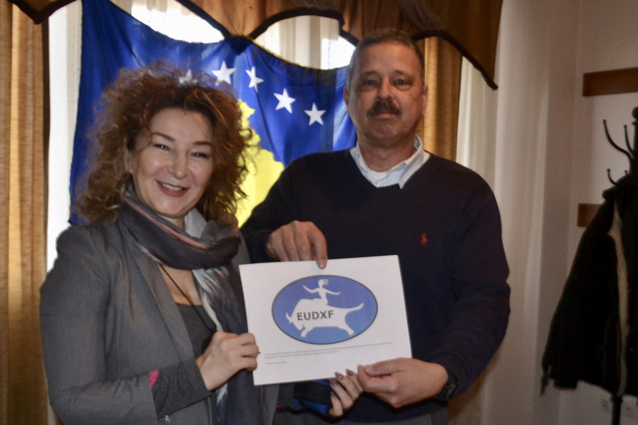 The Z60A team operates from two different sites. One is on the campus of the Technical Faculty in Prishtina and the other one in a hotel some 30 km NW of the capital. After a week in which more than 30.000 QSO’s were made, we thought that we could allow ourselves to celebrate the fact that Kosovo is now a DXCC entity and that it is number one on the most wanted list. In the presence of Mr. Kreshnik Gashi, the Head of the Regulatory Authority, we looked back on how this was achieved. Believe me this has not been easy. For our life member Martti OH2BH this was his 27th visit to Kosovo! I used the opportunity to hand over the EUDXF support to Vjollca Z61VB, the President of SHRAK (Shoqata e Radioamatorëve të Kosovës). The Z60A activity will last for another three weeks.